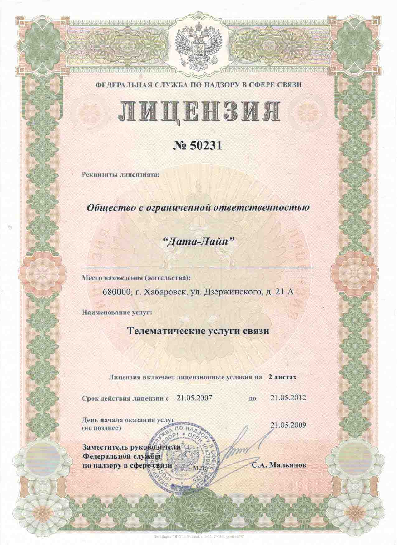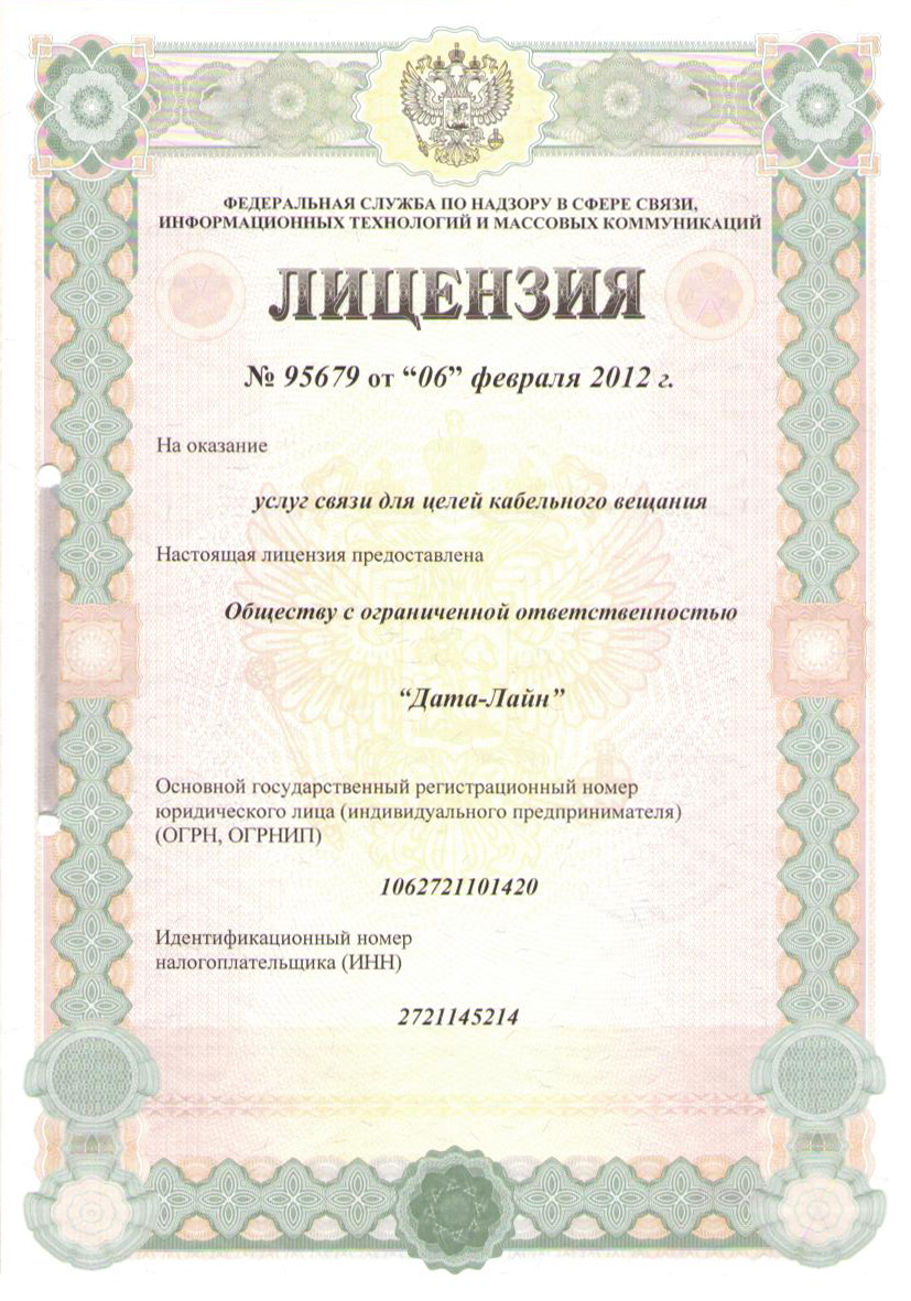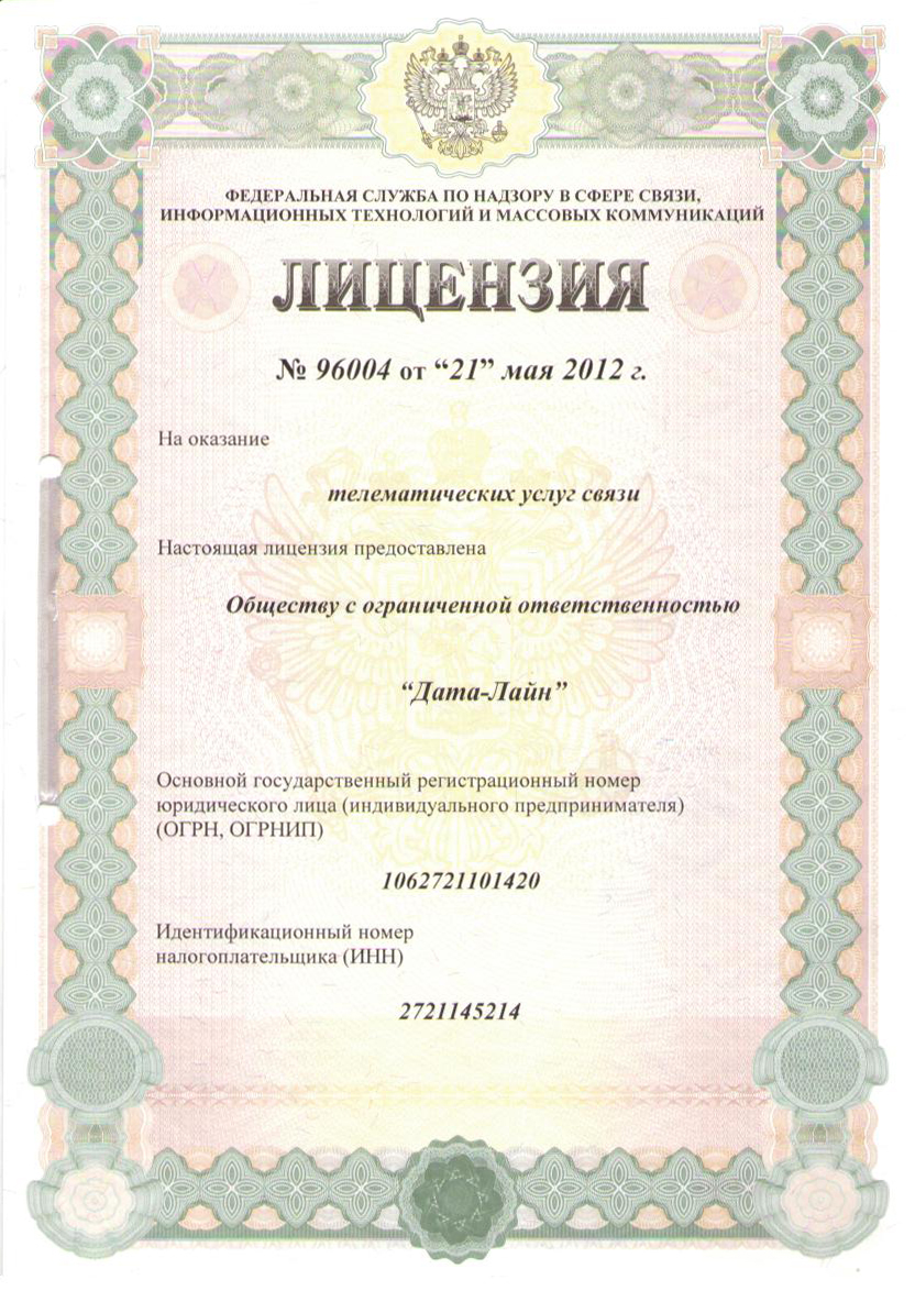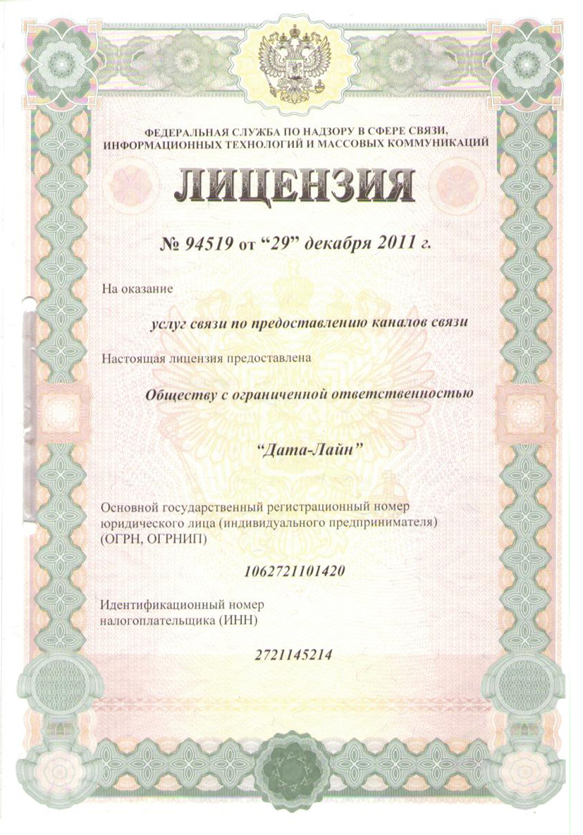 Предоставление своих услуг компания ООО «Дата-Лайн» осуществляет на основании лицензий и свидетельства, выданных Федеральной службой по надзору в сфере связи.