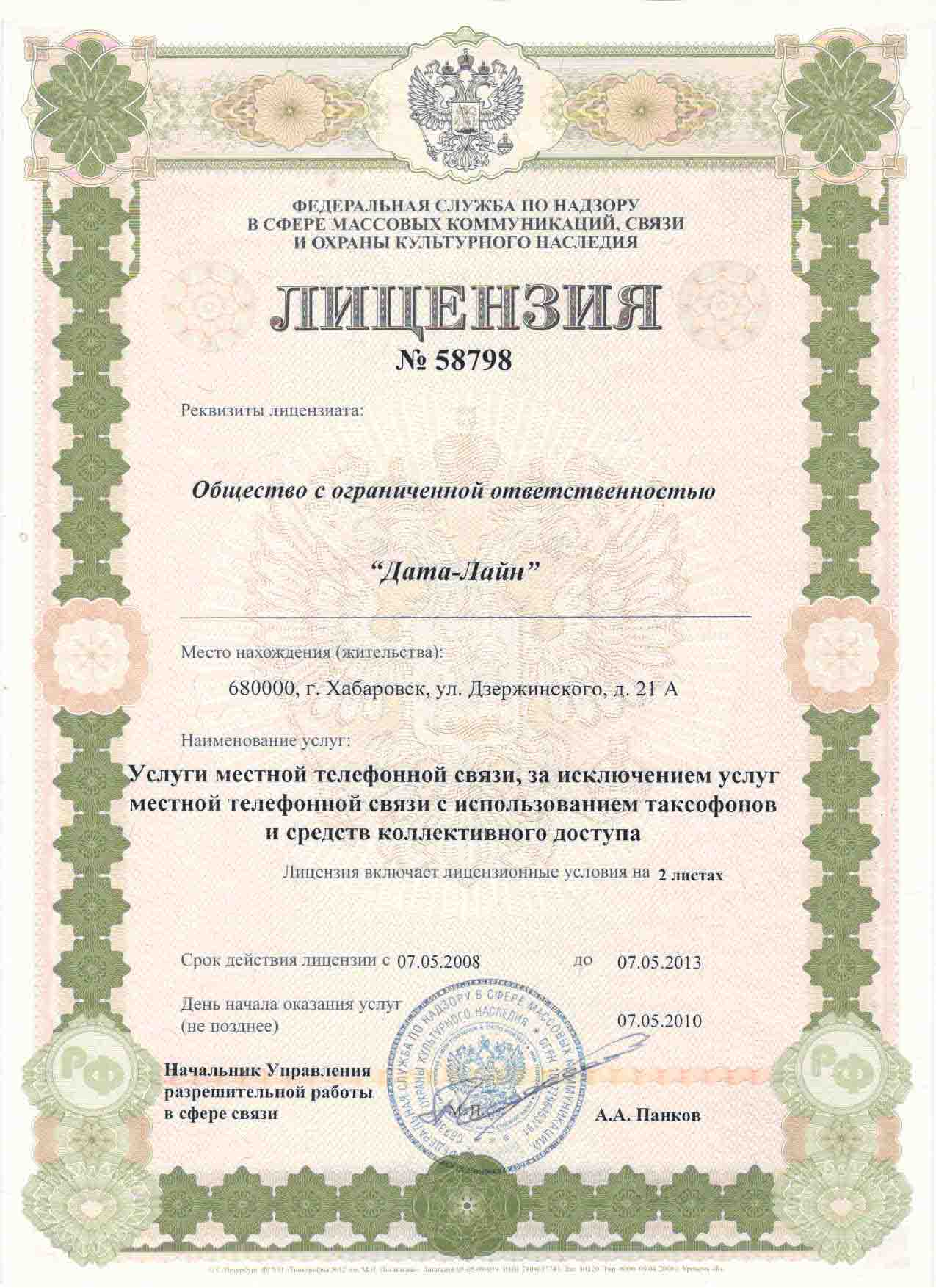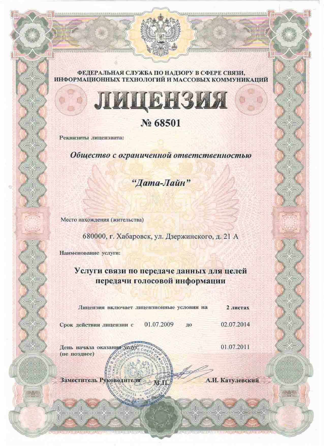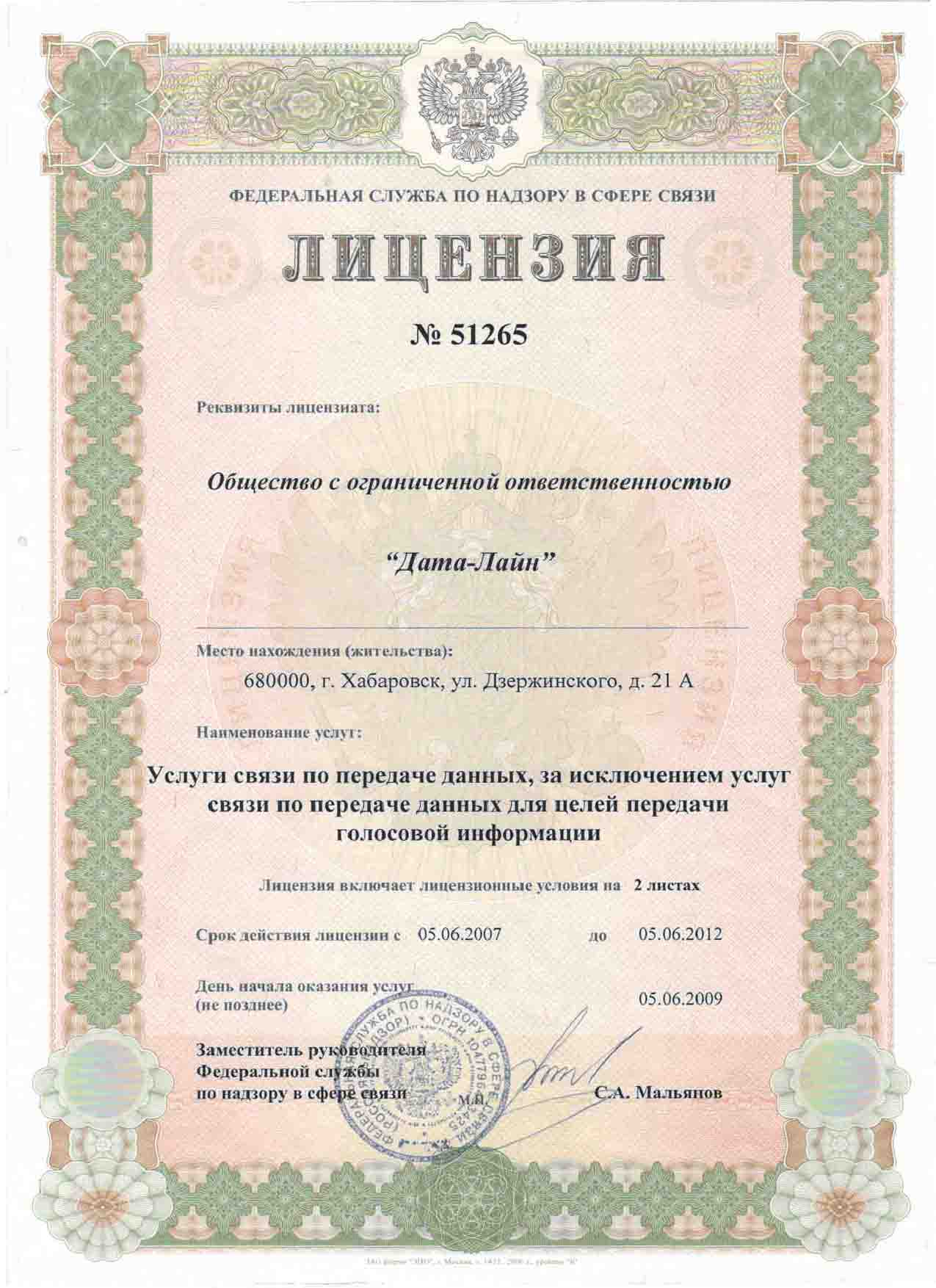 Предоставление своих услуг компания ООО «Дата-Лайн» осуществляет на основании лицензий и свидетельства, выданных Федеральной службой по надзору в сфере связи.