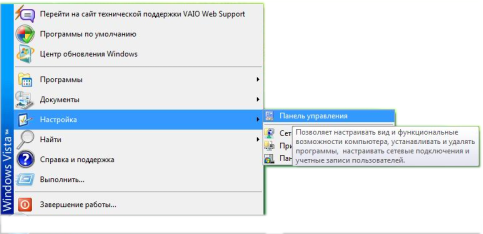 1)Открываем 'Пуск' -> 'Настройки' -> 'Панель управления'.