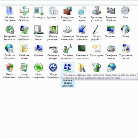 2)Далее открываем 'Управление сетями и общим доступом'.