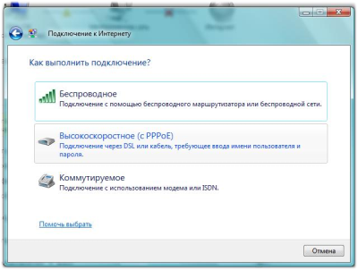 5)Выбираем 'Высокоскоростное (с PPPoE)'.