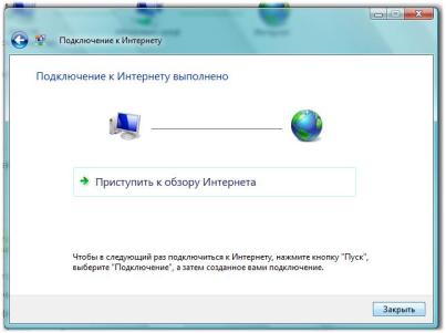 После успешного подключения появится следующее окно. Нажимаем 'Приступить к обзору интернета'.