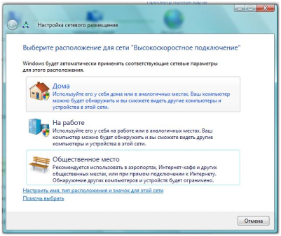 И далее указываем 'Расположение для сети' (лучше указать Дома).